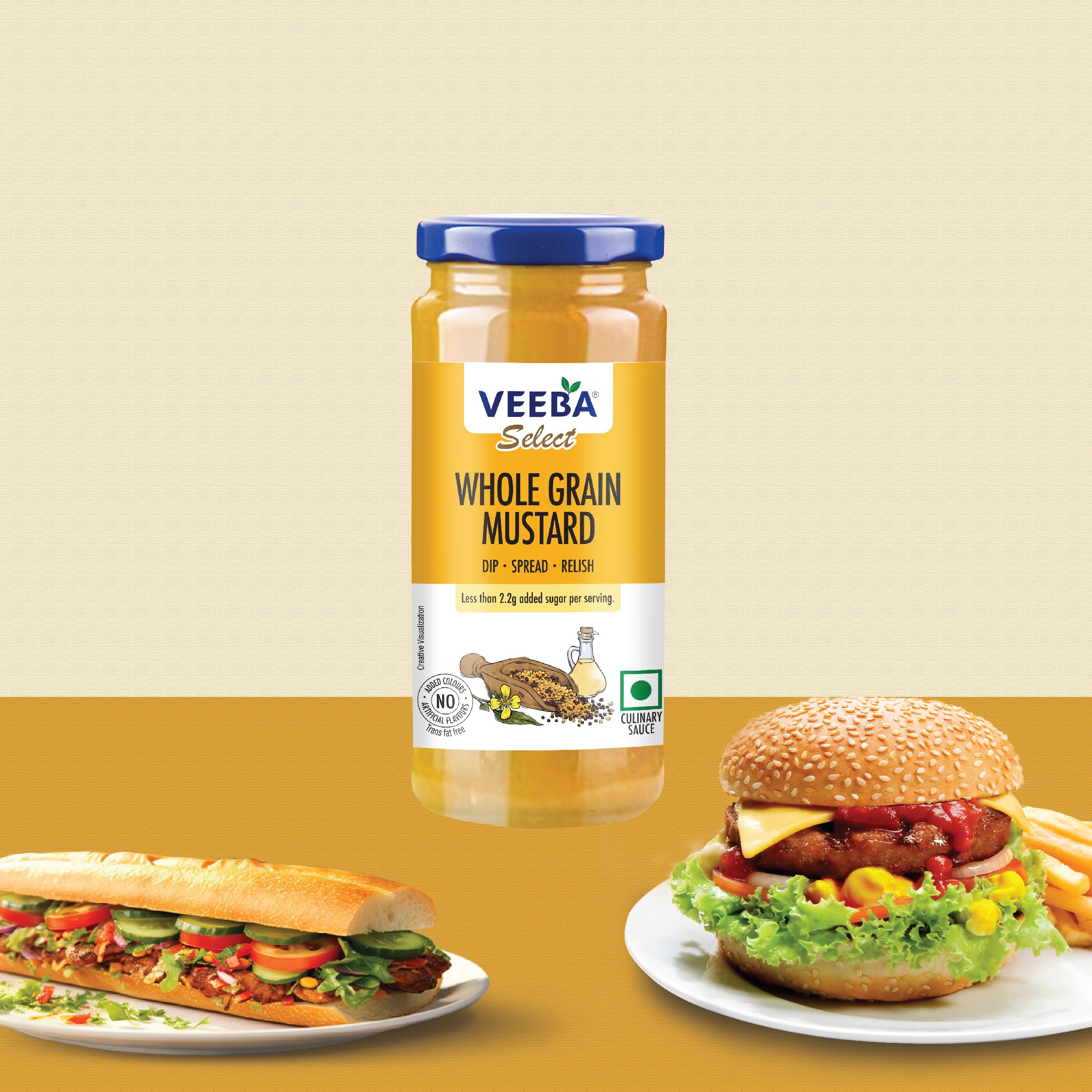 Savor the rich textured goodness premium Whole Grain Mustard a delectable condiment crafted to elevate your culinary experience! Made with the finest quality black and yellow mustard seeds this gourmet mustard boasts a robust flavour profile that adds depth and complexity to your favourite dishes.