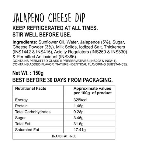 The mouth-watering spicy flavour of jalapenos blends smoothly with a mellow cheesy base to make this yummy dip one of our best sellers!.