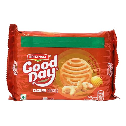 Made with real cashews Britannia Good Day Cashew Cookies is a delightfully rich and melt-in-your mouth cookies that offers a nutty and buttery taste. The rich aroma and delectable taste that it offers is evident from the visibly abundant ingredients on the cookie