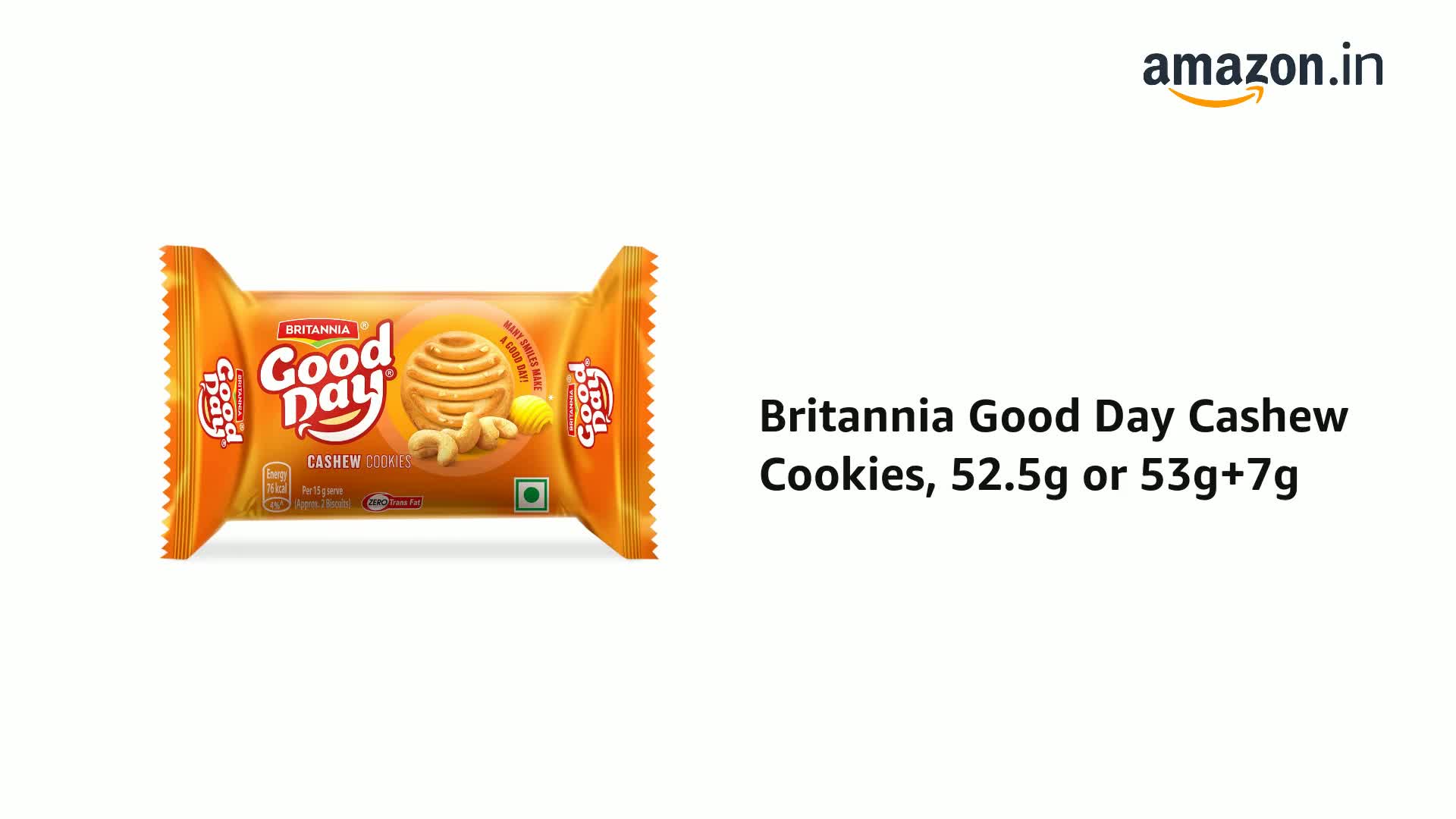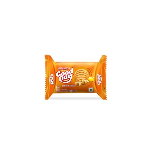 Indulge in the scrumptious Britannia Good Day Cashew Cookies boasting a delightful crunch and rich cashew flavor. These 100% vegetarian cookies make for a perfect anytime snack satisfying your cravings between meals. Britannia India renowned for delivering fresh and healthy products offers an extensive range including popular brands like 50-50 Tiger NutriChoice Bourbon Milk Bikis and Marie Gold all with zero trans fat. Pair these delectable cookies with your tea and experience pure delight in every bite.