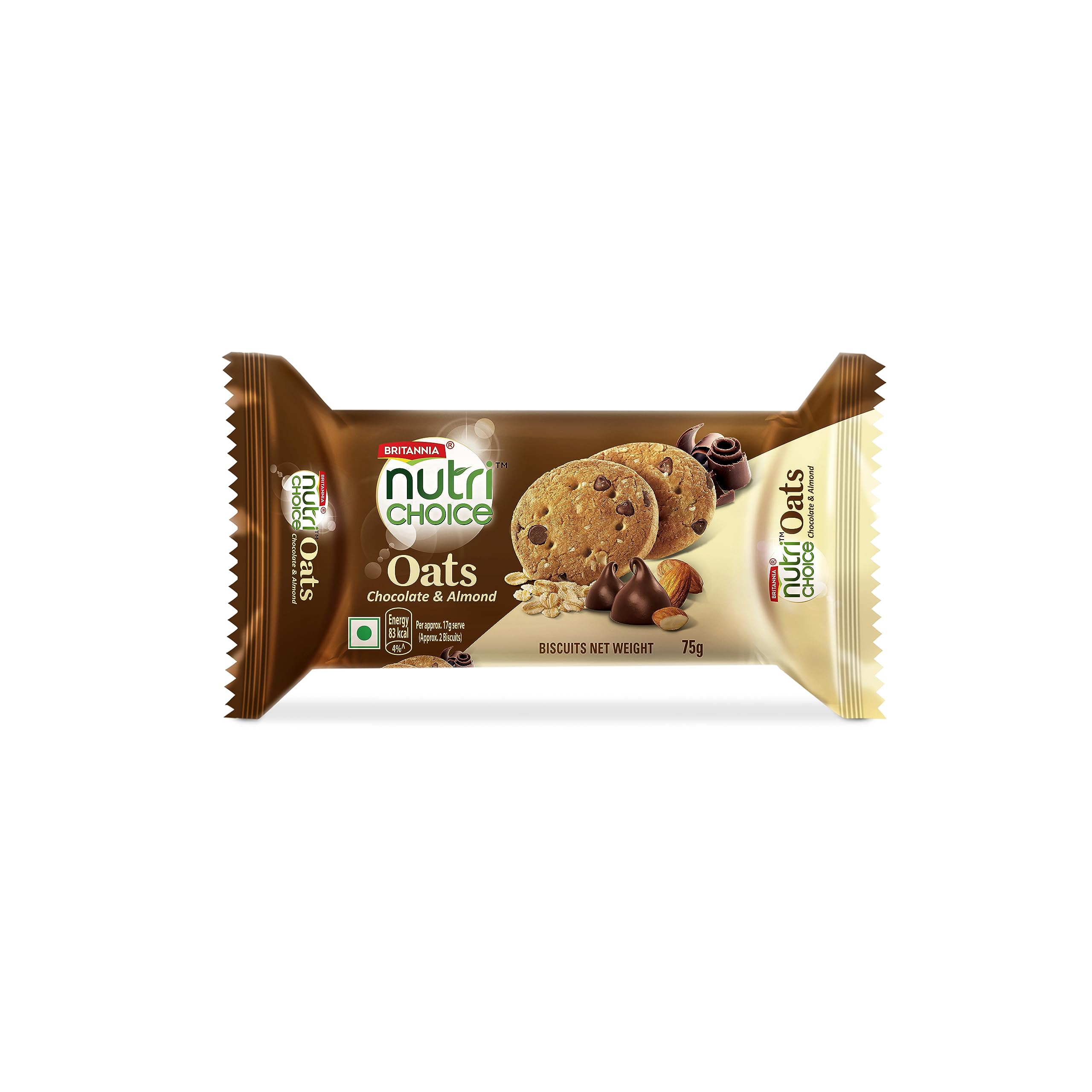 Britannia Nutri Choice Oats Cookies - Chocolate & Almond 75g Pack