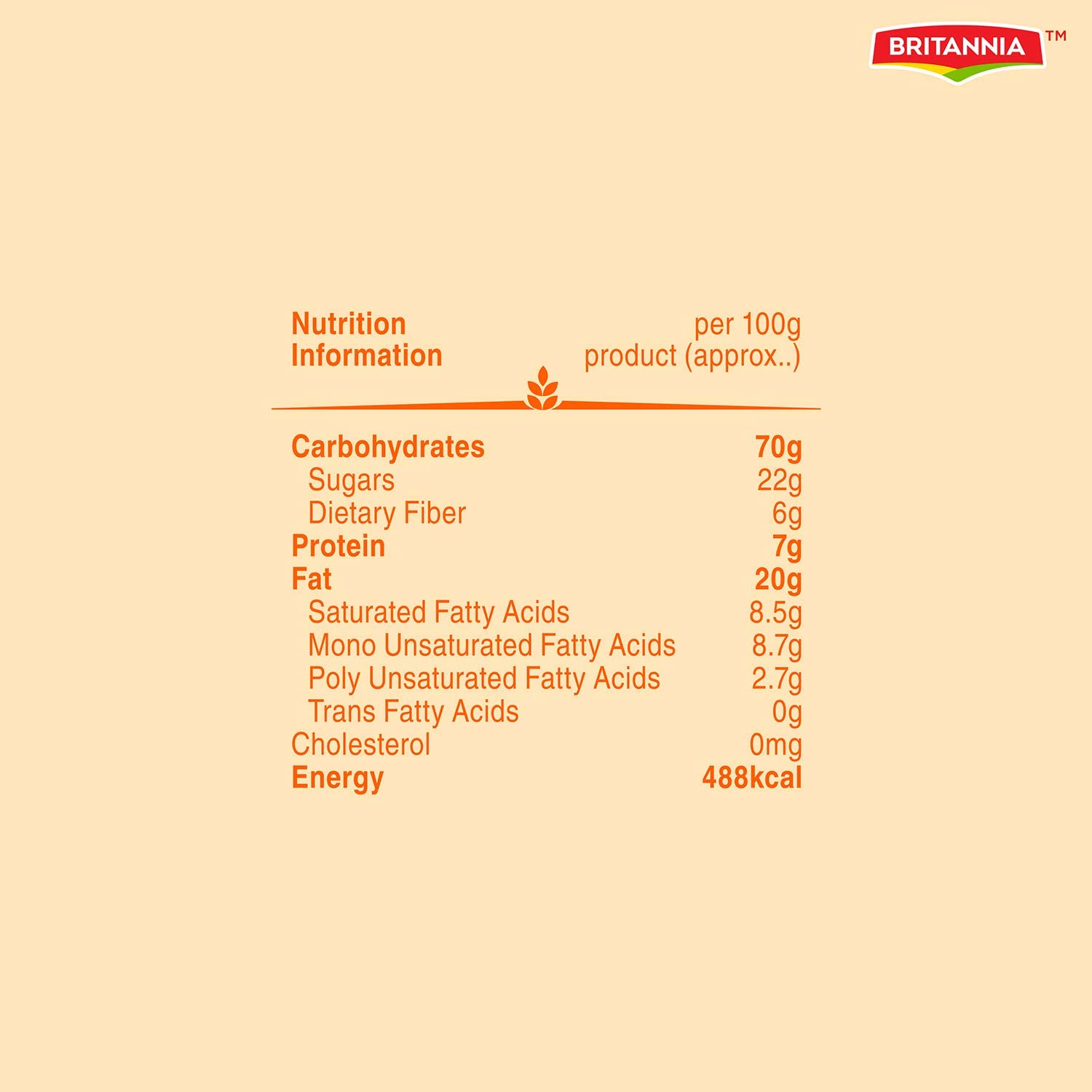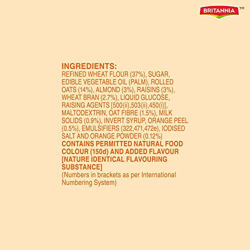 Britannia NutriChoice Oats Orange Cookies are a unique healthy snack which is combination of rolled Oats wheat bran and almonds with an added twist of Orange. These high fibre Oats and almond biscuits are perfect for whenever you want to snack on healthy biscuits. They are also yummy Orange cookies when you want to snack on something tasty.Go ahead and make a good choice.