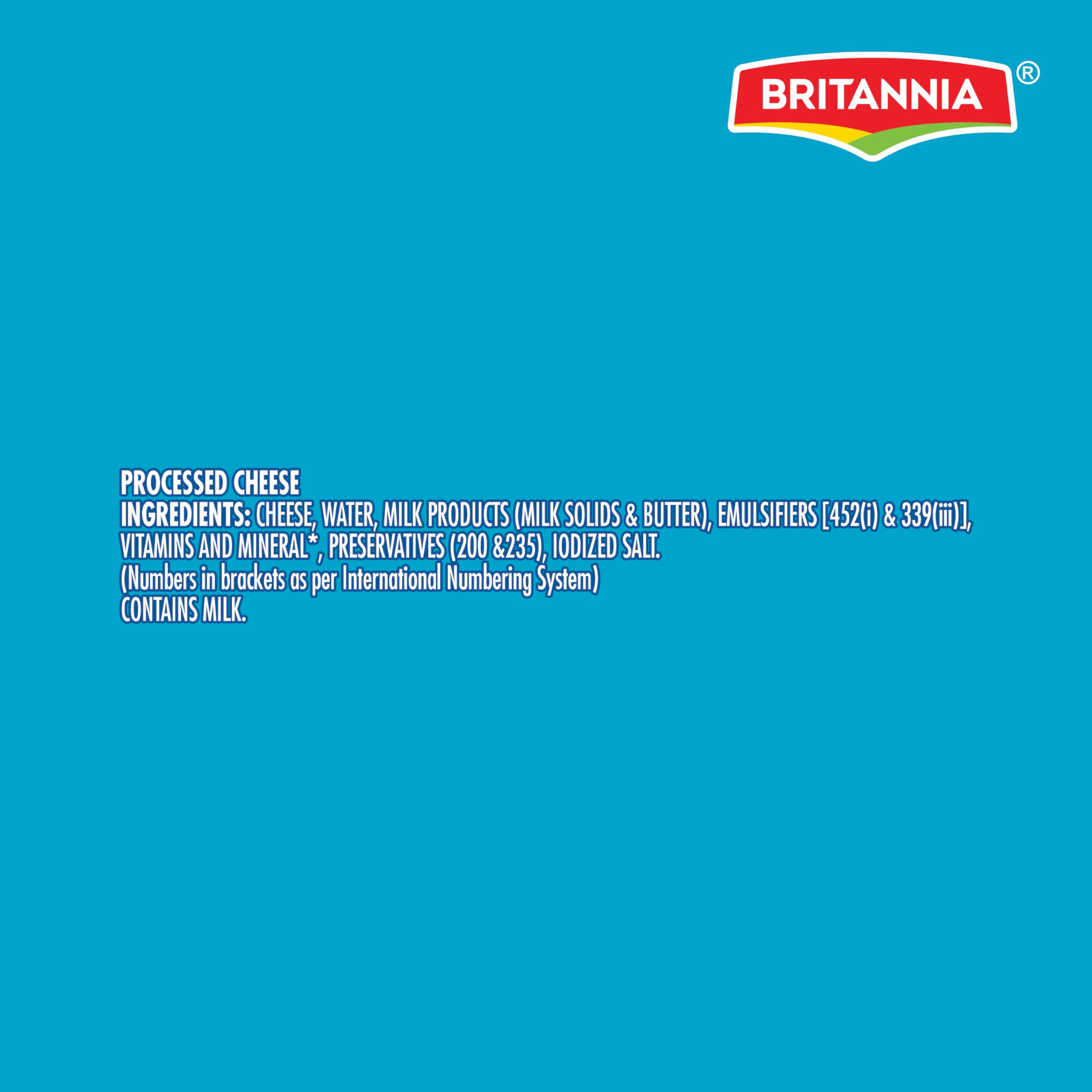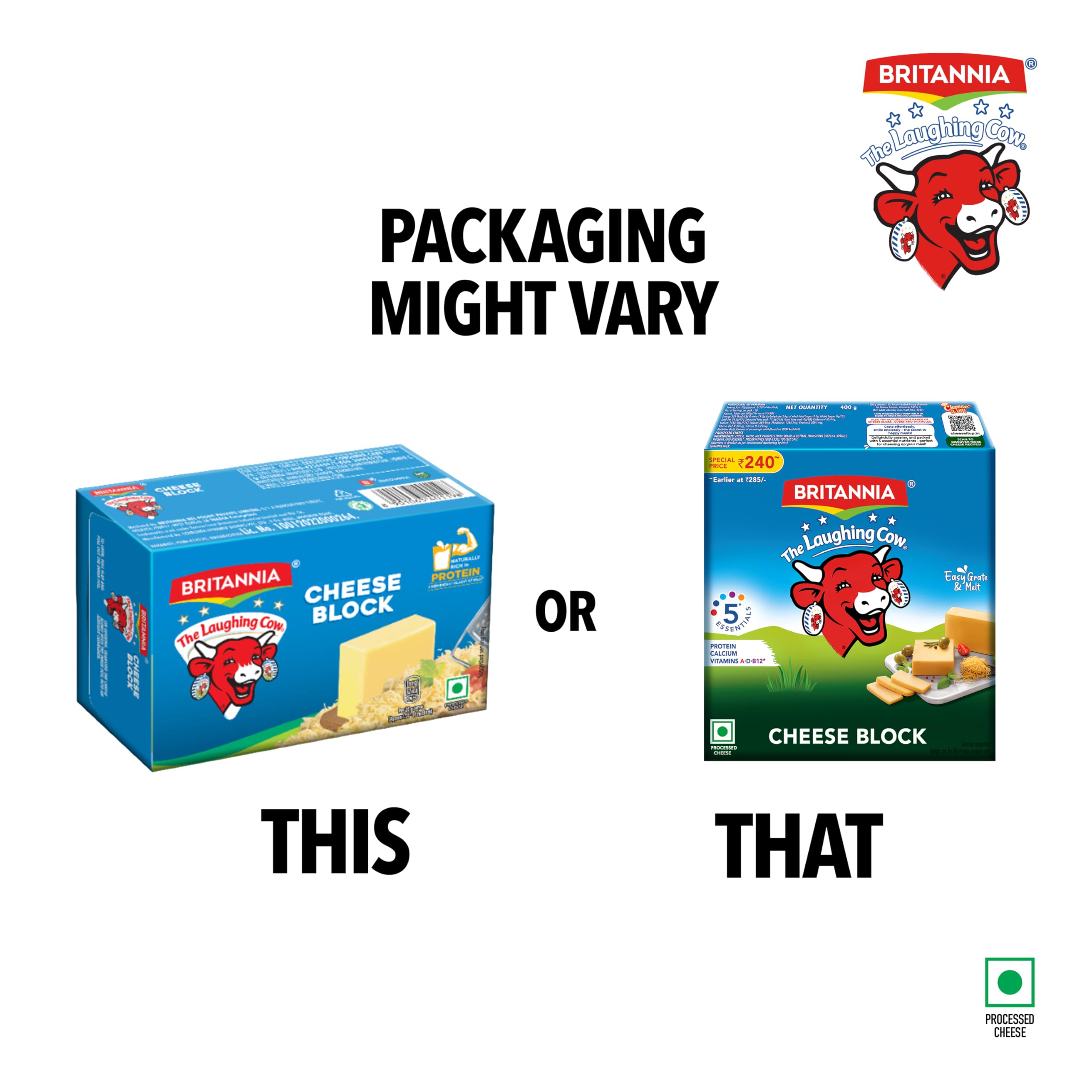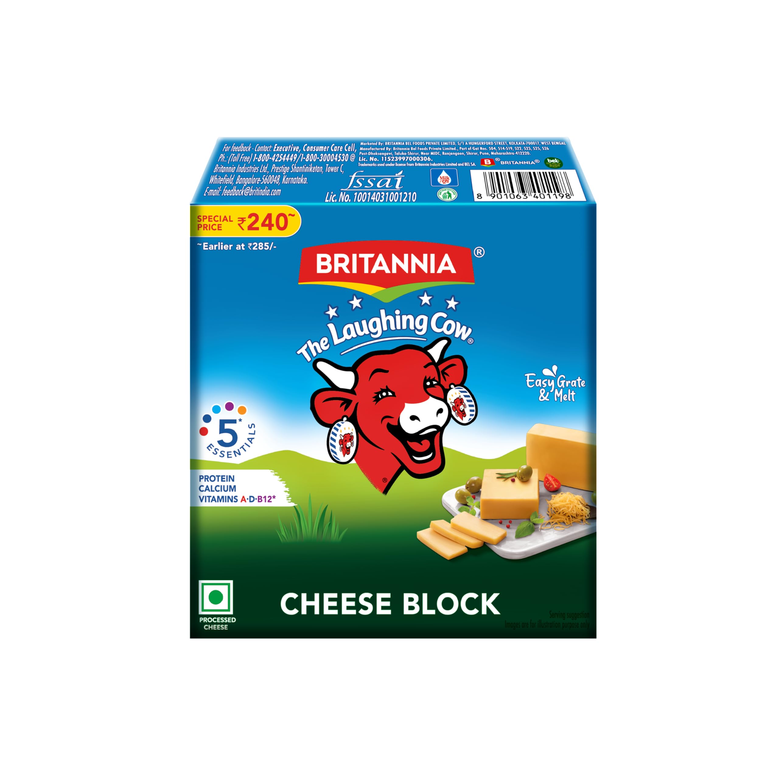 Made with the goodness of cow's milk Britannia The Laughing Cow Cheese Block is a delicious creamy block of cheese that you can cut melt and grate to add cheesy flavours to food. Satisfy your cheesy cravings with Britannia processed cheese that has a rich flavour. Contains the power of milk proteins and calcium Britannia The Laughing Cow Cheese melts easily and dissolves to give a perfect taste. Believing in delivering fresh and healthy products Britannia India manufactures some of India's widest range of cheese- slices cubes blocks spreads pizza cheese and much more.