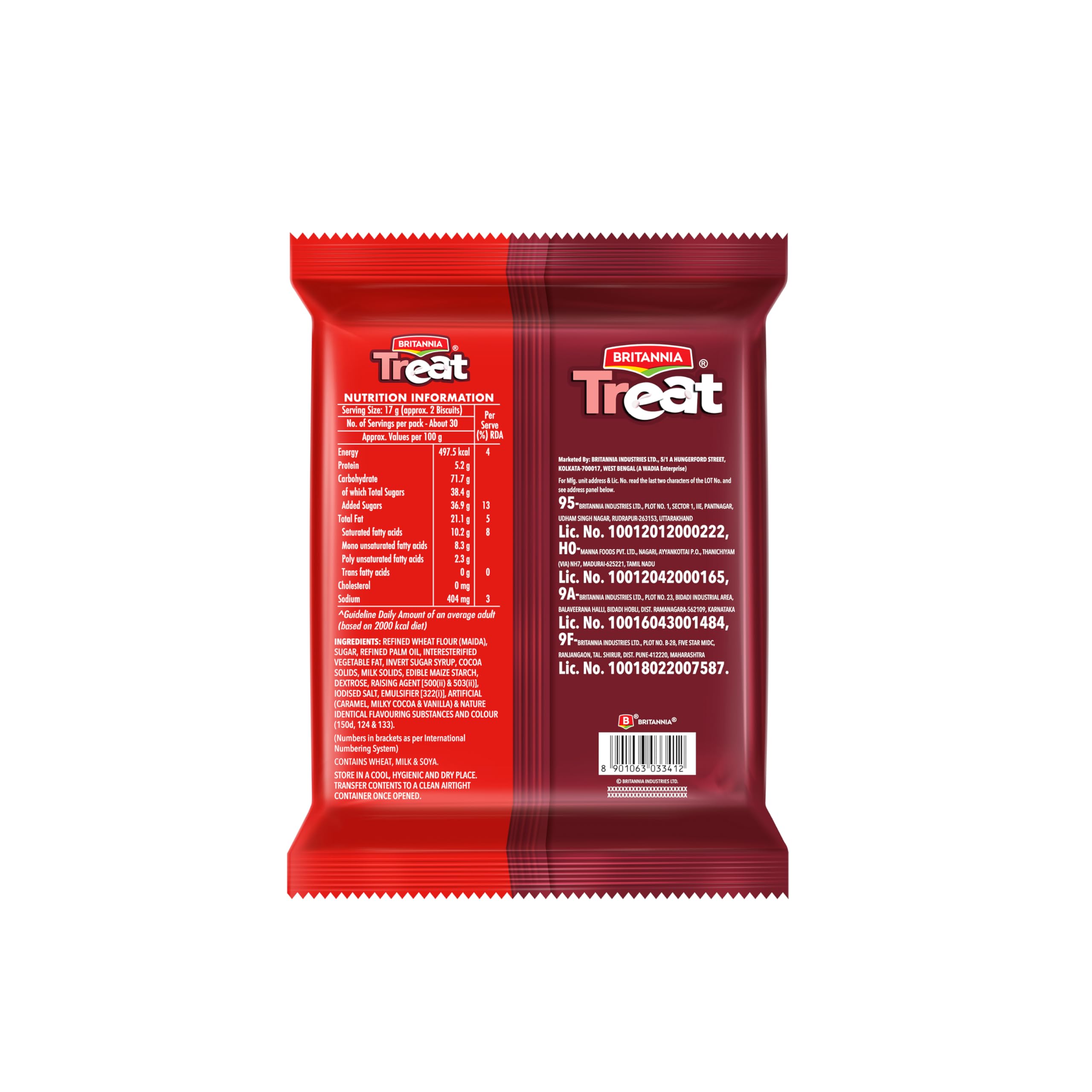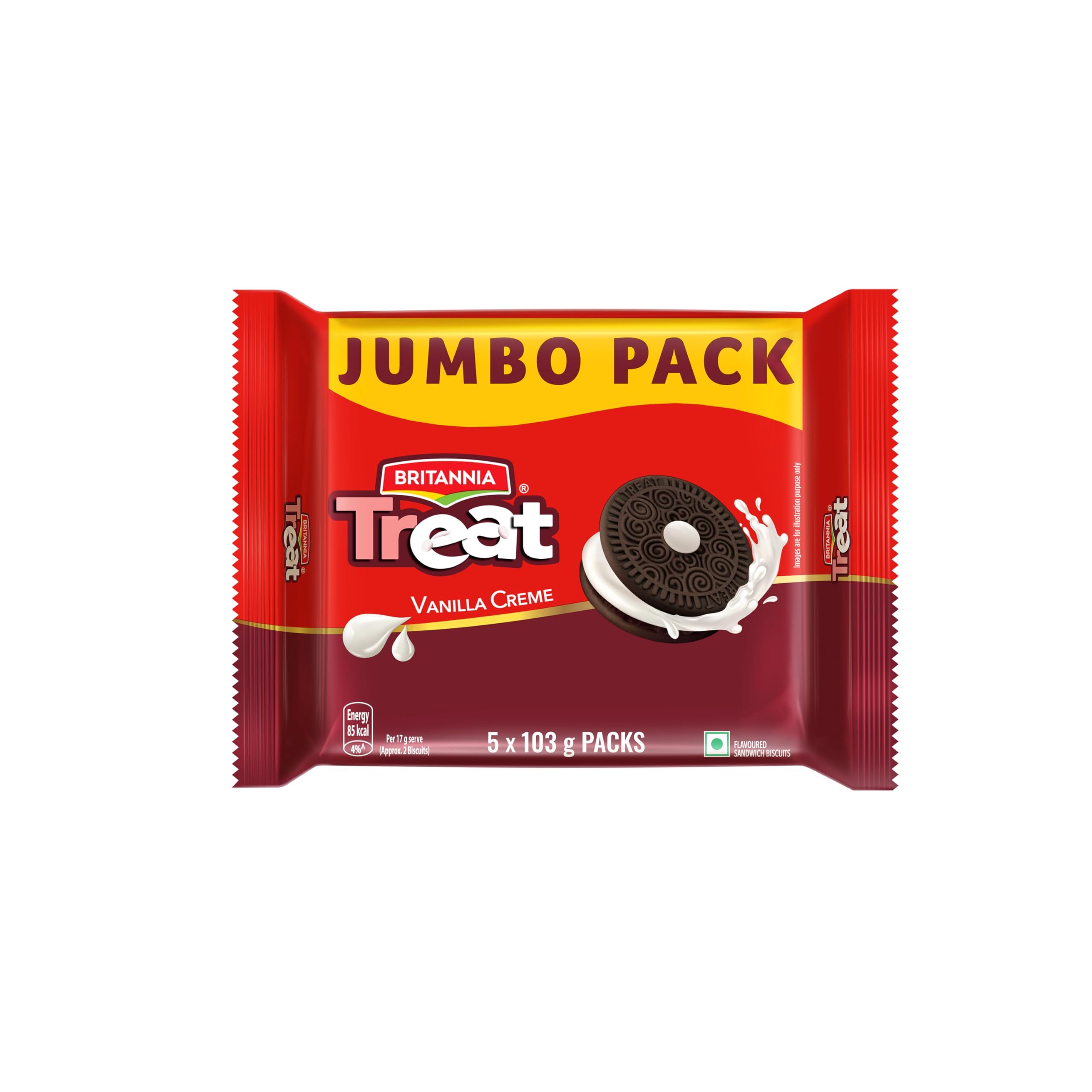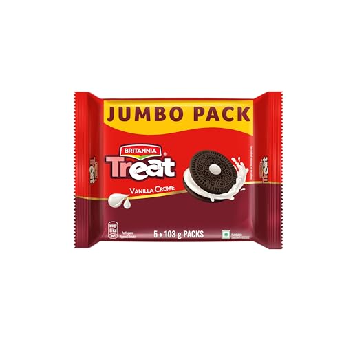 Britannia Rich vanilla creme packed between crispy choco biscuits Treat Vanilla Creme is everyone's delight. This lip-smacking treat is filled with soft/smooth creme and endless fun in every bite. Get your creamy delight in every bite!