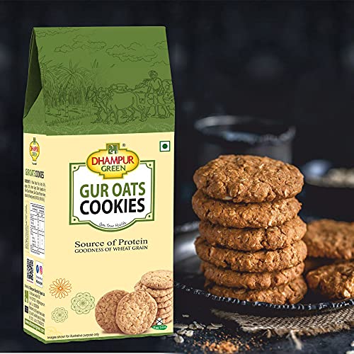 Dhampurgreen Jaggery Gur Oats Cookies Biscuit 200G | Gur Gud Bakery Cookies Biscuit Healthy Snacks