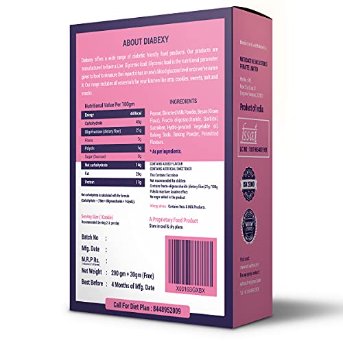 Diabexy is a diabetic food product brand which provides Low Glycemic load food products for diabetic persons. Glycemic load of a food item is an important nutritional parameter because it suggest that how much quantity of a food item will lead to how much increase in blood sugar level. We can mathematically calculated and estimate the glycemic load of a food product. 1 glycemic load is equal to 1g glucose and 1g glucose will increase blood sugar by 20 points. Estimated Glycemic load of maida cookies is 45 per 100g which means it will increase blood sugar by 900 points. Estimated Glycemic load of Diabexy Diabetic Peanut Butter cookies is 4.5 which means it will increase blood sugar level by just 90 points. It means Diabexy Diabetic Coconut cookies are having 90% less impact on blood sugar level than maida cookies. One must control his daily dietary glycemic load to manage diabetes. Every bite of food is important for managing blood sugar level for a diabetic person. Snacks are very important mini meals of the day. Most of the diabetic snacks available in market are made up of maida and maltodextrin which has a very high glycemic load. Diabexy Diabetic cookies are Low Glycemic Load cookies especially designed for diabetic person. They are made with high quality peanuts and peanut butter which is a rich source of fat and protein with very low glycemic load. Our mission at Diabexy is to help people to live a diabetes free life. It took us more than 10 years of research and development to develop Low Glycemic Load food products. We believe that it is possible to reverse diabetes with the help of healthy eating habits and disciplined lifestyle.