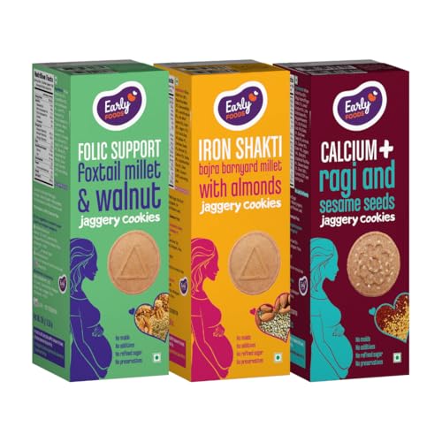 Early Foods - Pack of 3 Pregnancy Biscuits - Millet Biscuits | Sugarfree Biscuits - (Ragi Sesame, Foxtail Walnut & Bajra Barnyard Cookies)