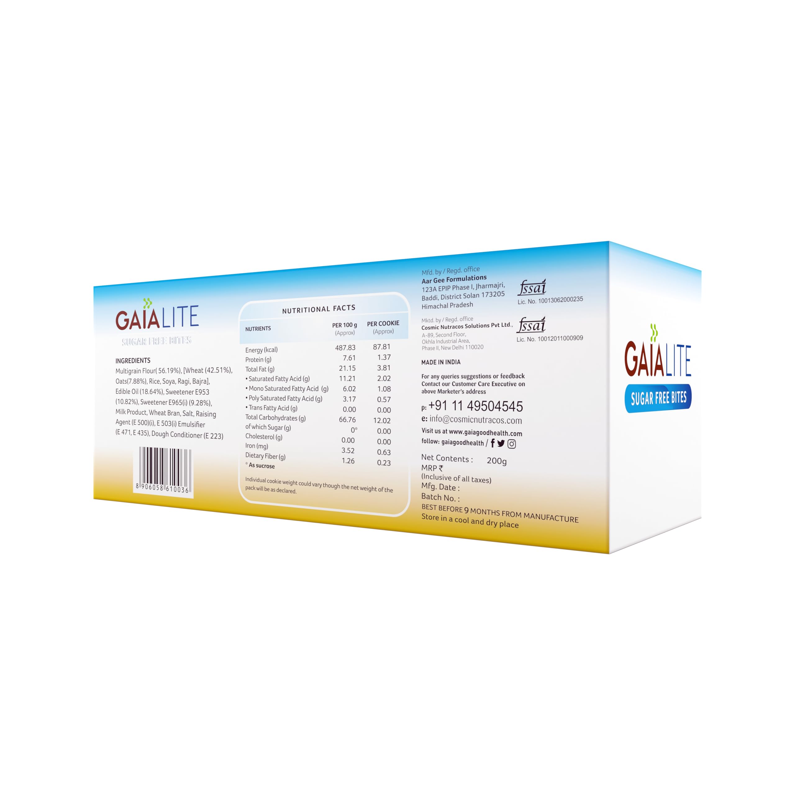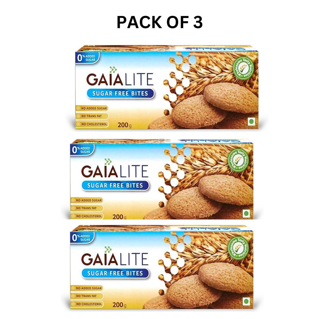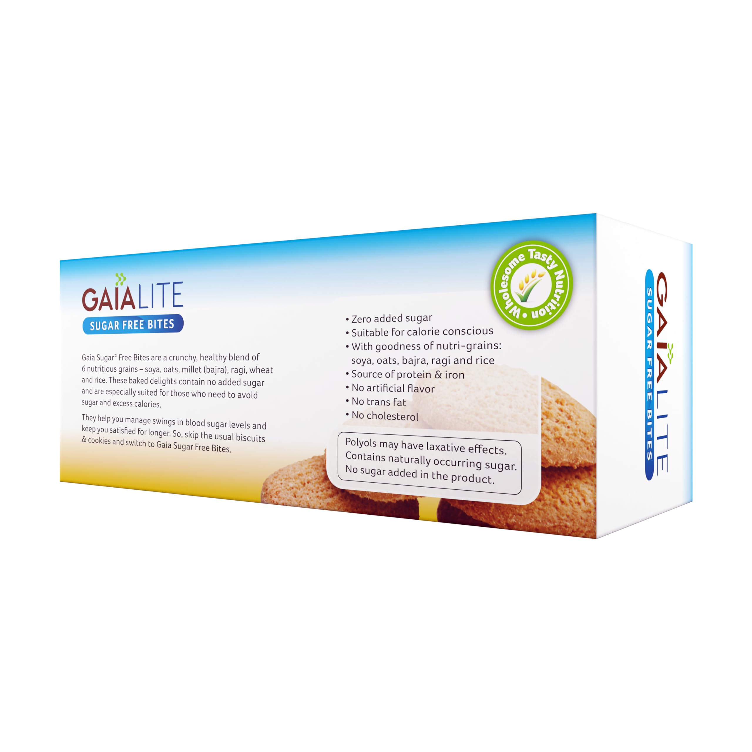 Enjoy the perfect balance of health and taste with Gaia Sugar-Free Cookies a wholesome snack specially crafted for those who want to cut down on sugar without compromising on flavor. These delicious cookies are made with high-fiber ingredients and contain no added sugar making them a great option for diabetics fitness enthusiasts and anyone following a calorie-conscious lifestyle. Baked to perfection Gaia Sugar-Free Cookies are trans fat-free crispy and lightâideal for your tea-time cravings or a quick hunger fix during the day. Whether you're managing your blood sugar levels trying to lose weight or simply looking for a healthy snacking alternative these cookies are the guilt-free indulgence you've been looking for. This 200g pack is hygienically packed to ensure freshness and quality in every bite. With their rich crunchy texture and subtle natural sweetness they offer a satisfying snack that keeps you energized without any sugar spikes. Say goodbye to sugary temptations and welcome a healthier snacking routine. Gaia Sugar-Free Cookies make wellness easy and delicious. Keep them at home in your office drawer or in your bag to beat hunger anytime anywhere.