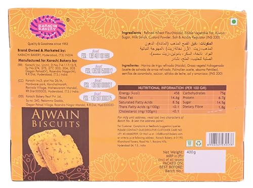 Karachi Fruit Biscuit - Premium 400 g Karachi Bakery's Ajwain Biscuits 400g