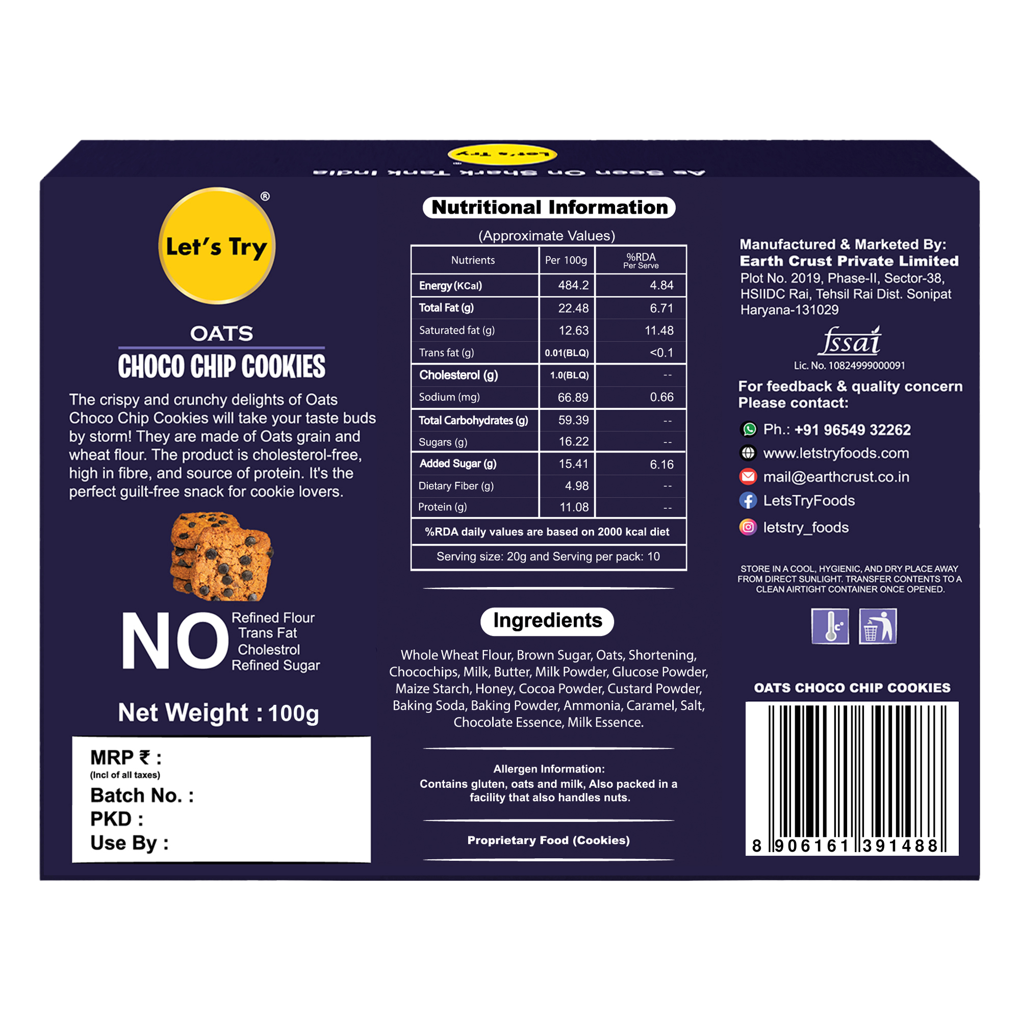 Let's Try Oats Choco Chip Cookies 100gm