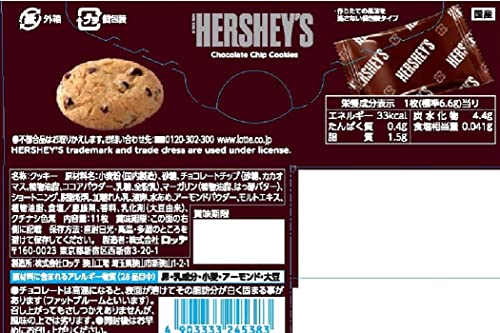 You can also enjoy the American-born chocolate brand "Hershey" in cookies. A crunchy Hershey chocolate chip cookie made by kneading chocolate chips and almond powder into a fragrant cookie. Each piece is individually wrapped so you can easily enjoy it in a variety of situations. Raw materials/components Flour (domestic production) sugar chocolate chips (sugar cacao mass vegetable oil cocoa powder lactose whole milk powder) margarine (vegetable oil fermented butter) shortening skim milk powder sweetened condensed milk liquid eggs starch syrup Almond powder malt extract vegetable oil salt/leavening agent fragrance emulsifier (soybean derived) gardenia pigment