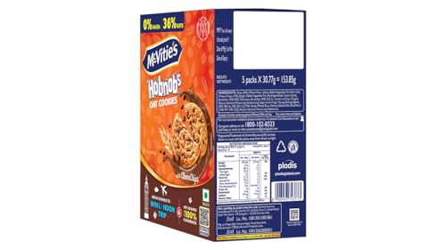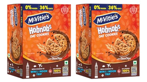 Mcvitie's Hobnobs Oat Cookies with Chocochips - 0% Maida Crunchy & Wholemeal biscuits topped with melt in the mouth chocochips Perfect with the beverage of your choice