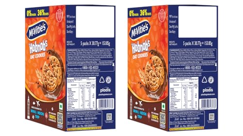 McVities Hobnobs Oat Cookies With Chocochips - 0% Maida Crunchy & Wholemeal Trans Fat Free 153.8 Gm - Pack Of 2