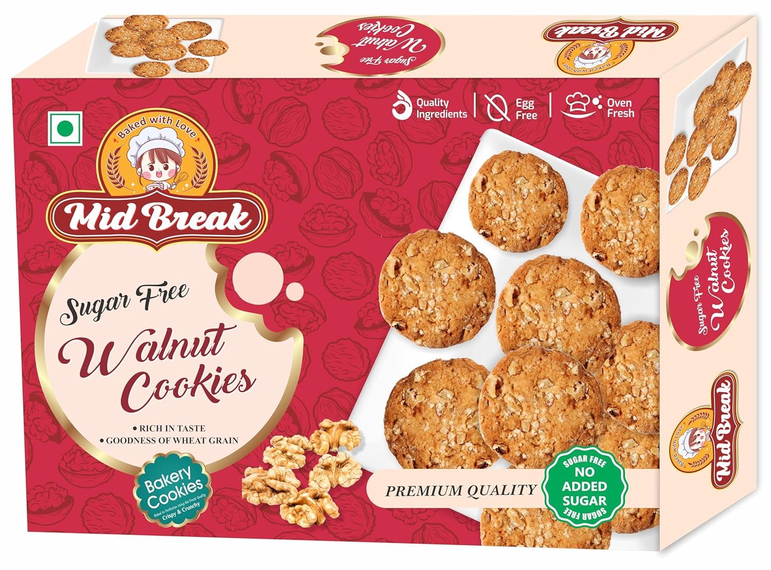 "Indulge guilt-free in the wholesome delight of Mid Break Company's freshly oven-baked sugar-free walnut cookies – a delicious, pure vegetarian treat for your taste buds!"Worth buying the cookies must buy products from mid break if u want to have freshly baked cookies