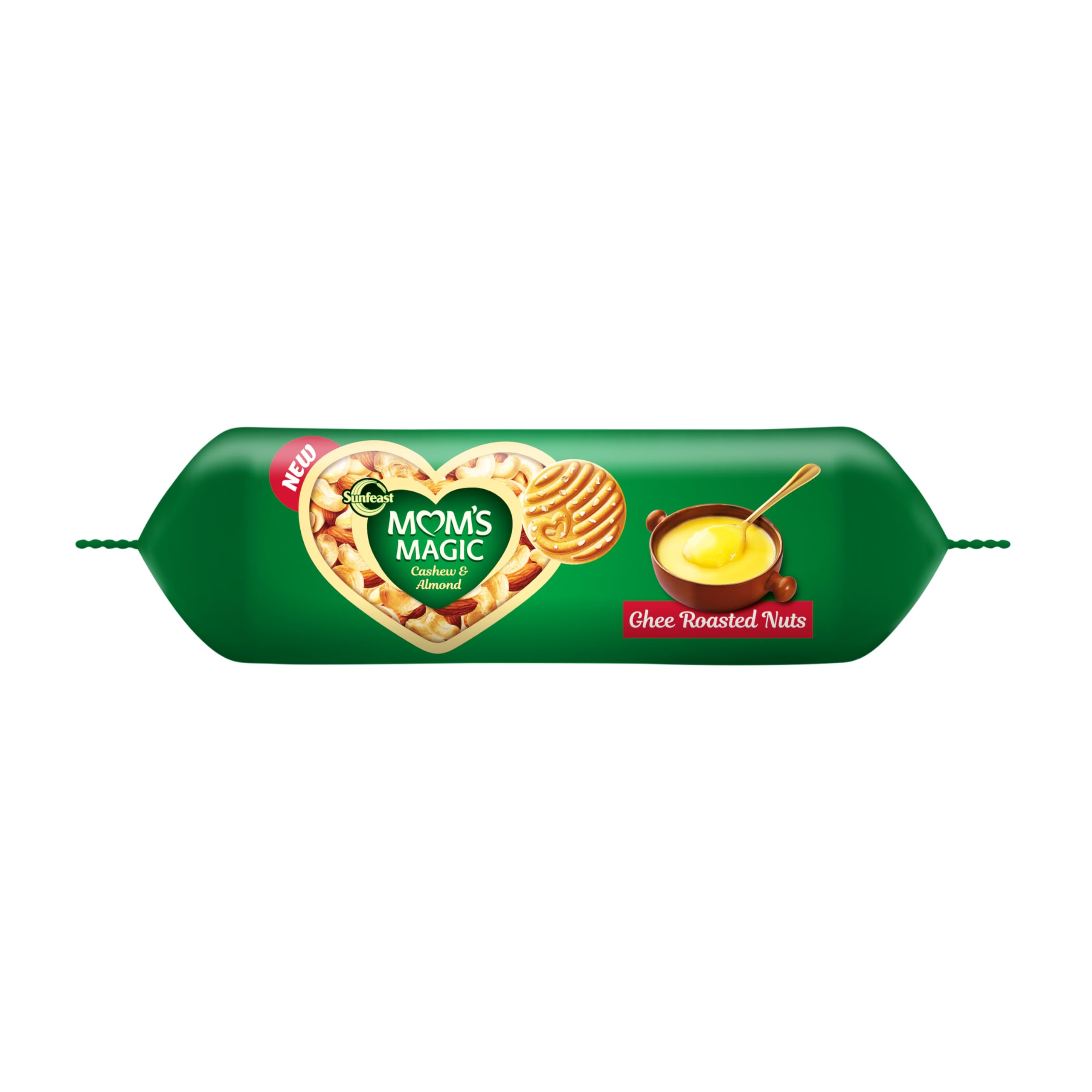 Mom's Magic Cashew Almond Cookies - Just the way Mom would make it. Nutty cookies Mom's Magic are loaded with choicest cashews and almonds which are roasted to perfection for a rich full-bodied taste. Complemented with roasted Butter that has mildly sweet caramel notes which give a unique flavour and rich smoothness to Mom's Magic Biscuits. A perfect tea time snack these cookies are your 4pm companion for when you want a bite of sweet nuttiness that envelops your senses just like a mom's hug. Enjoy these baked biscuits and step into a world abundant with warmth heartfelt hugs and mom's magical taste.