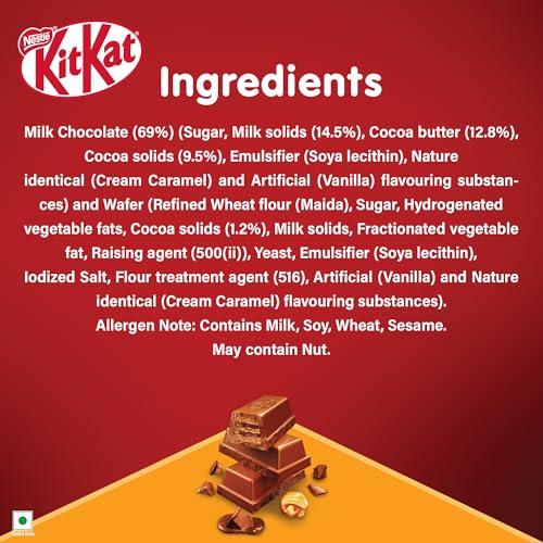 Nestle Kitkat Caramel Chocolate Coated Wafer where layers of caramel flavoured chocolate coating meet crispy cocoa wafer. Each bite offers a truly rich flavourful experience with its perfect balance of wafer and chocolate. So why wait? Have a rich delicious break!Usage:Consume Directly. Storage-Store in a cool dry and hygienic place. Humidity and temperature may cause the product to develop a whitish layer this does not affect its fitness for consumption.Outer packaging may vary depending on stock availability.