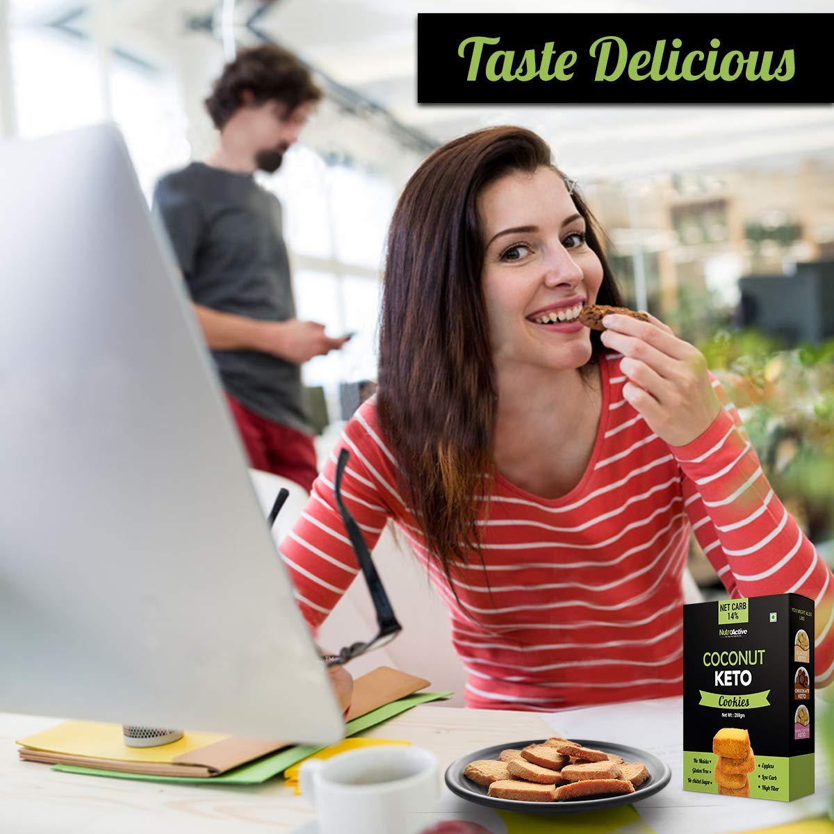• TASTES GREAT NutroActive Keto Chewy Cookies tastes great because they are prepared using sugar free sweetener sucralose which is very similar in taste to sugar. Once accustomed to these almond cookies you will not like the normal maida cookies. NutroActiv