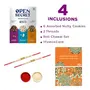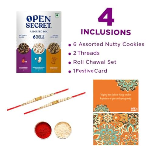 Open Secret Bhaidooj Gift Hamper with Chocolate Cookies | Tika Set Roli Chawal Bhai dooj Card | Bhaiya Tikka Thread Special Combo Pack | Healthy Gift Hamper for Brother Sister