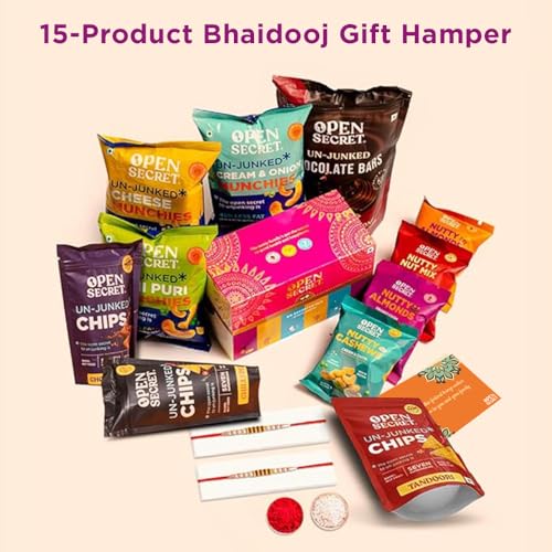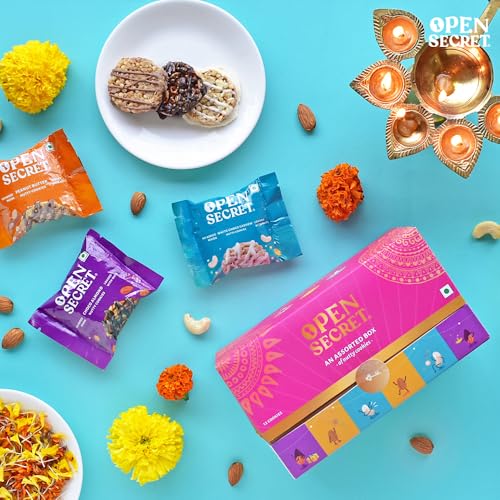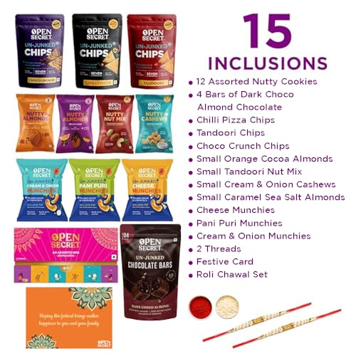 HomeGrocerySnacksCookiesOpen Secret Holi Gift Box | Combo of 15 | Dry Fruits, Chocolate Bar, Chips, Cookies & Munchies, Gift Hamper, Holi Gift Hampers, Gift Set, Corporate Gift for Employees with Festive Card