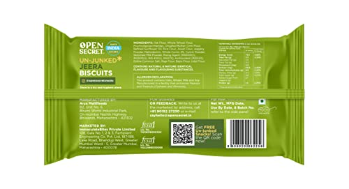 Open Secret jeera Biscuit Cookies are described as "unjunked" which means that they are made with wholesome ingredients and do not contain any artificial additives or preservatives. This makes them a healthier and more natural option compared to many othe