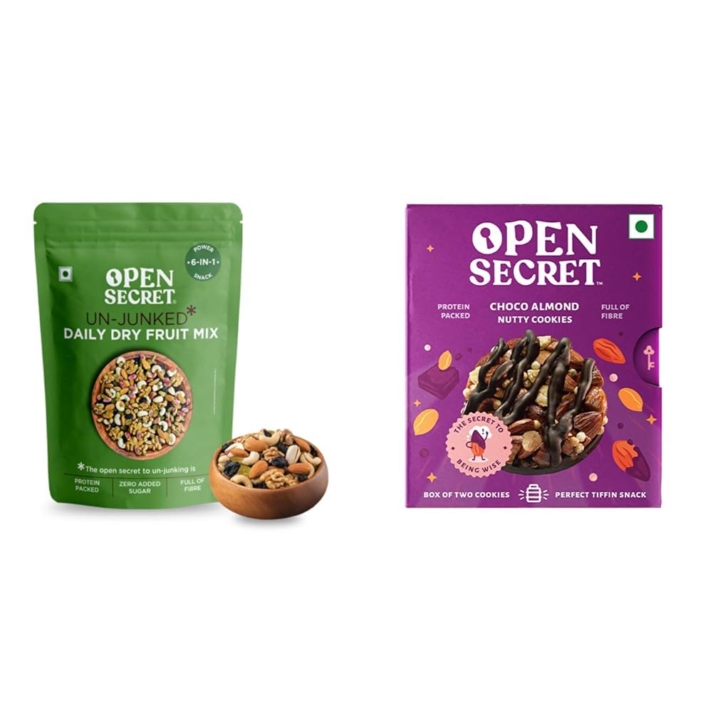 Open Secret Premium Daily Dry Fruit Mix | 6 in 1 Mixture | 1kg + 28 Choco Almond Cookies
