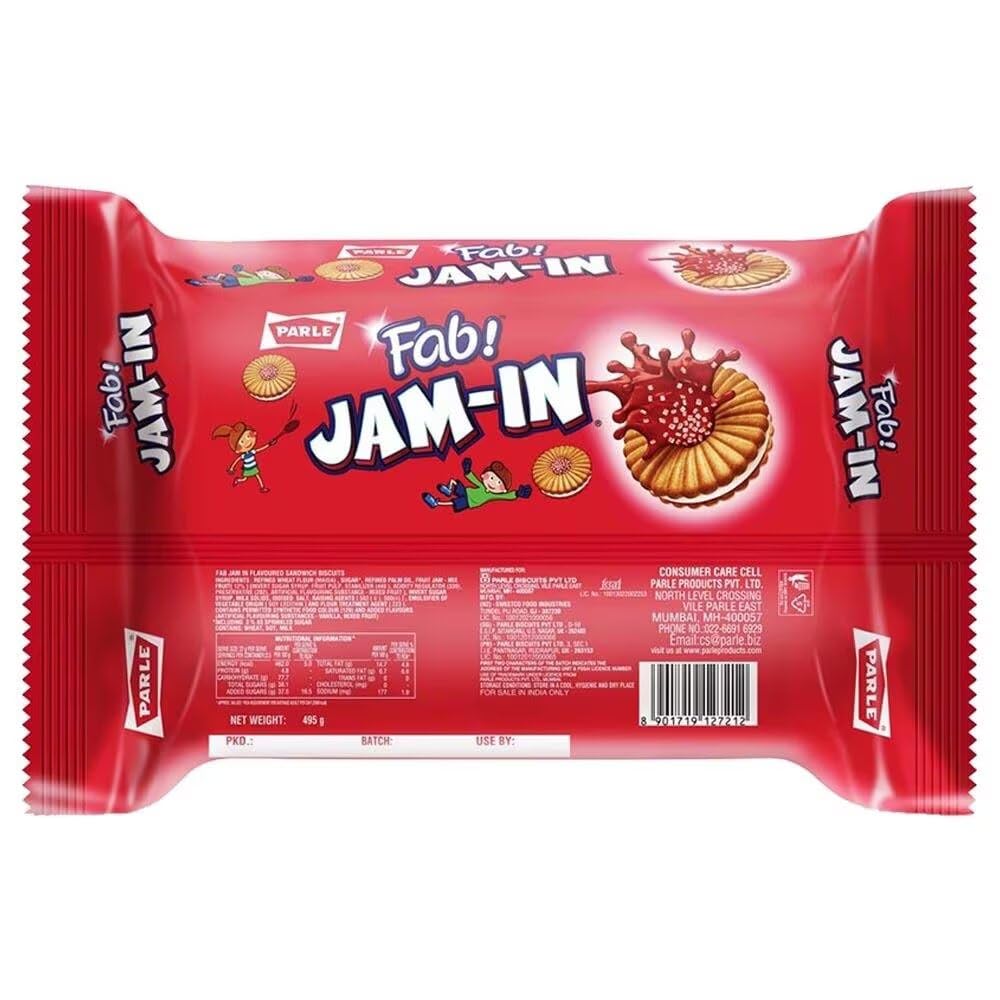 Parle Fab Jam-In Mixed Fruit Sandwich Biscuits 495G - Flavoured Strawberry