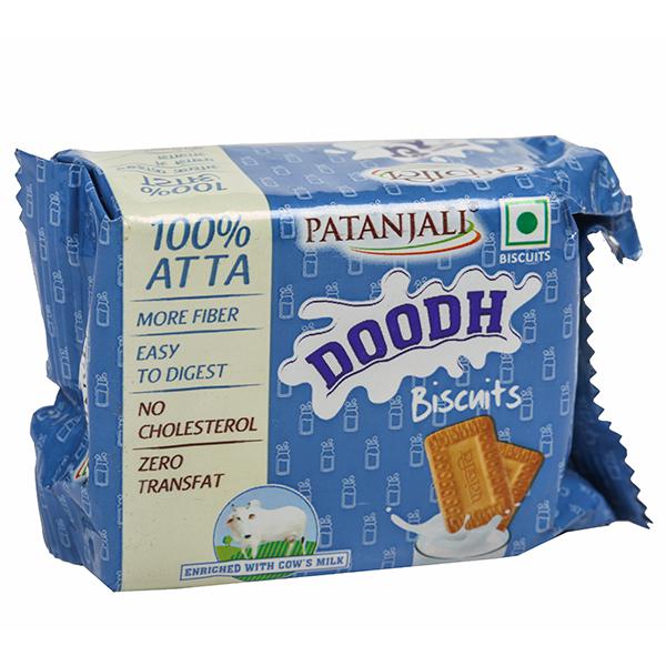 Patanjali Natural Doodh Biscuits are 100% atta biscuits that are enriched with more fiber. These biscuits are easy to digest, have no cholesterol, zero transfats and are enriched with cow's milk. All good things in a packet of biscuits.*Rich in protein.*Rich in dietary fibre.*Source of iron.Wheat flour,Sugar,Whole wheat atta,Refined palm oil,Suji,Yeast,Milk Solids,Wheat gluten,Wheat bran,Edible common salt,Flour treatment agent