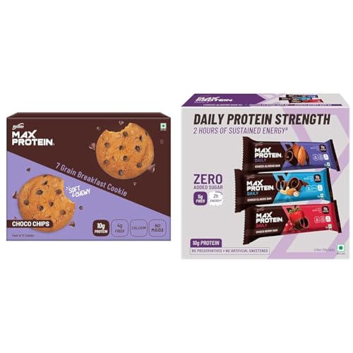 RiteBite Max Protein 7 Grain Breakfast Cookies - Choco Chips (660g Pack of 12) loaded with Protein Fiber and calcium NO MAIDA GMO FREE NO Preservatives.Shop wide range of Products from the house of RiteBite Max Protein avaliable on AmazonRiteBite Max Protein Daily Assorted 10g Protein Bars (Pack of 6)Max Protein Daily Assorted - Choco Almond x 2 Choco Berry x 2 Choco Classic x 2 (Pack of 6) 300g
