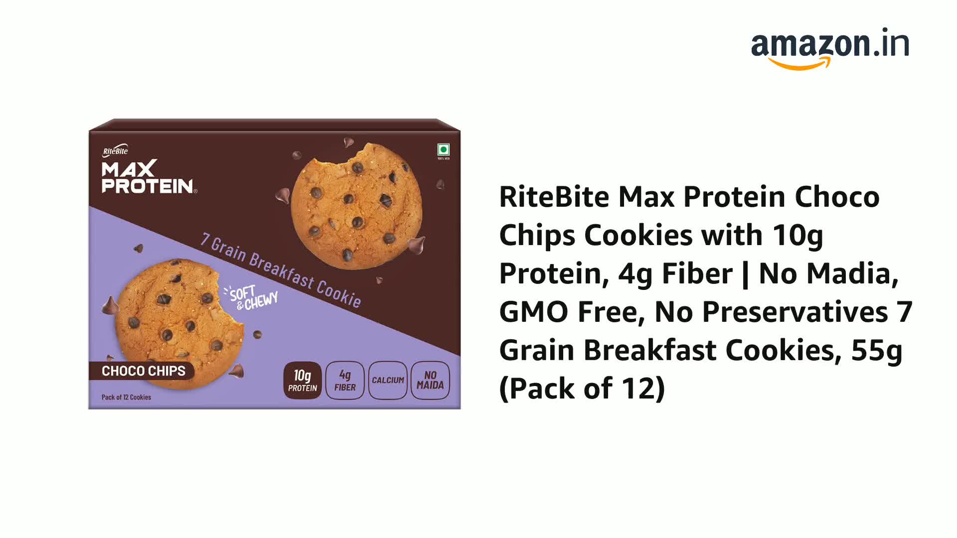 RiteBite Max Protein 7 Grain Breakfast Cookies - Choco Chips 660 g - Pack of 12 (55g x 12)