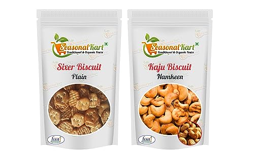 HomeGrocerySnacksCookiesSEASONALKART Combo Small Salted Hexagonal Biscuits and Kaju Namkeen Biscuit 400 Gram Each||Chai (Tea) Time Snacks Total 800 Grams