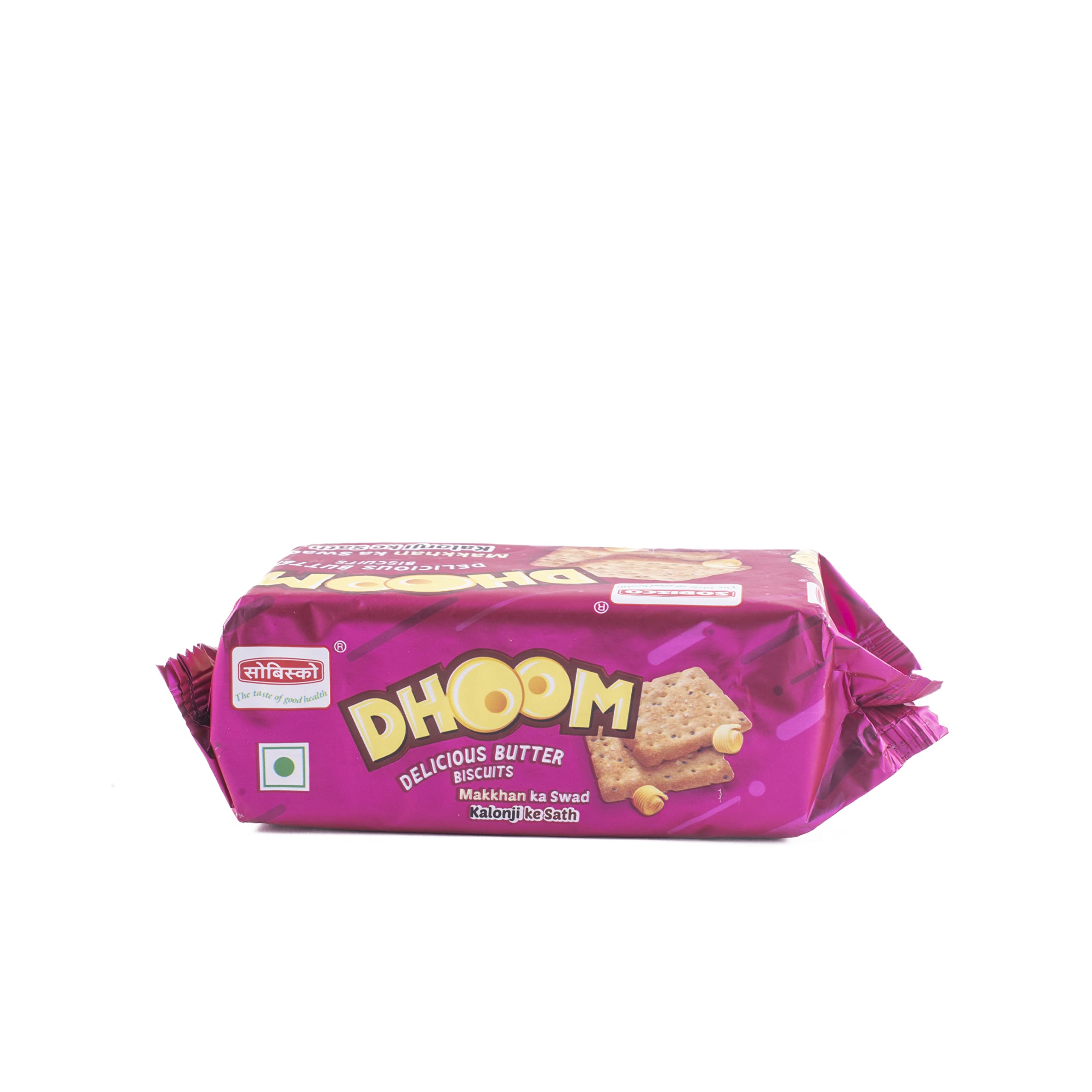 "SOBISCO Dhoom Delicious Butter Biscuits Makhhan ka swad Kalonji ke sath : - SOBISCO - The taste of good health Amazing Creation to suits your taste On a journey to treat the nation and beyond with the best in taste and health Sobisco started its story more than a couple of decades ago. The mission was to create a name that would stand for quality and wholesome goodness. The vision being to give people the gift of nutrition. Established in 1992 this flagship brand of Sona Biscuits has come a long way with its current annual production of 100000 tonnes. The power to gift its customers over 100 varieties of products ranging from sweet to savoury biscuits along with delicious cakes has made Sobisco a force to be reckoned within the FMCG sector : : -:Disclaimer: - Despite our attempts to provide you with the most accurate information possible the actual packaging ingredients and colour of the product may sometimes vary. Please read the label directions and warnings carefully before use. - Dhoom - Delicious Butter Biscuits : Perfect for Anytime Munching : Amazing Creation to suits your taste : Makkhan ka swad Kalonji ke sath : The taste of good health : : : Stroage Instruction : - Store under cool dry and hygienic place - Keep away from direct sunlight : : Nutritional Facts : - Energy - 453 kcal Protein - 8.46g"