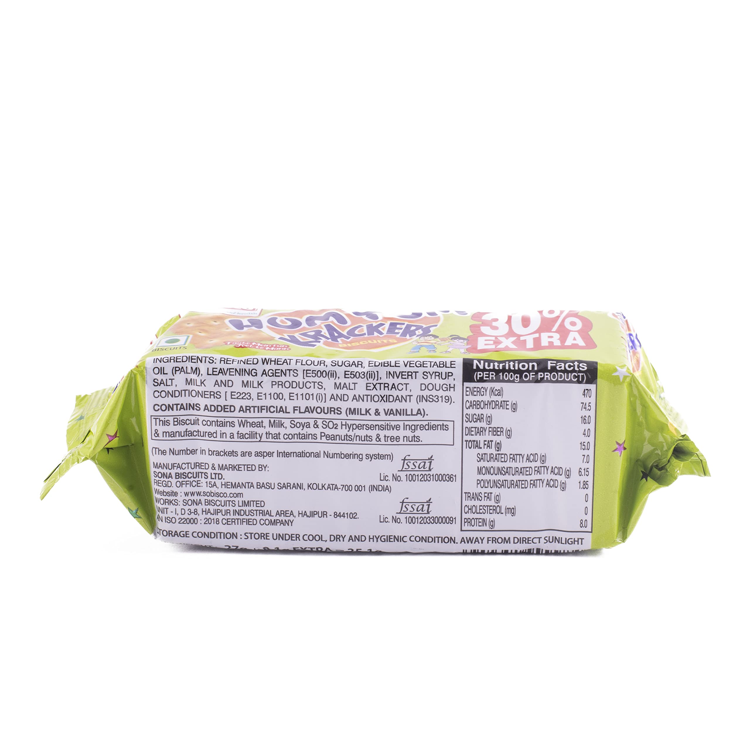 "SOBISCO Hum Tum Krackers Biscuits fresh tasty and delicious : - SOBISCO - The taste of good health Amazing Creation to suits your taste On a journey to treat the nation and beyond with the best in taste and health Sobisco started its story more than a couple of decades ago. The mission was to create a name that would stand for quality and wholesome goodness. The vision being to give people the gift of nutrition. Established in 1992 this flagship brand of Sona Biscuits has come a long way with its current annual production of 100000 tonnes. The power to gift its customers over 100 varieties of products ranging from sweet to savoury biscuits along with delicious cakes has made Sobisco a force to be reckoned within the FMCG sector : : -:Disclaimer: - Despite our attempts to provide you with the most accurate information possible the actual packaging ingredients and colour of the product may sometimes vary. Please read the label directions and warnings carefully before use. - Hum Tum Krachers Biscuits : Perfect for Anytime Munching : Amazing Creation to suits your taste : taste mein fun jeet le mann : : : : Stroage Instruction : - Store under cool dry and hygienic place - Keep away from direct sunlight : : Nutritional Facts : - Energy 470 kcal protein - 8.0g"