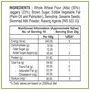 Sodium Aluminum Sulphate (INS 521) Starch Mono Calcium Phosphate (INS 341) Jaggery(23%) Whole Wheat Flour(Atta)(30%) Vegetable Fat (Palm Oil Palmolein) Refined Wheat Flour (Maida) Custard Powder Milk Solids Cardamom Baking Soda Baking Powder (Sodium Bicar