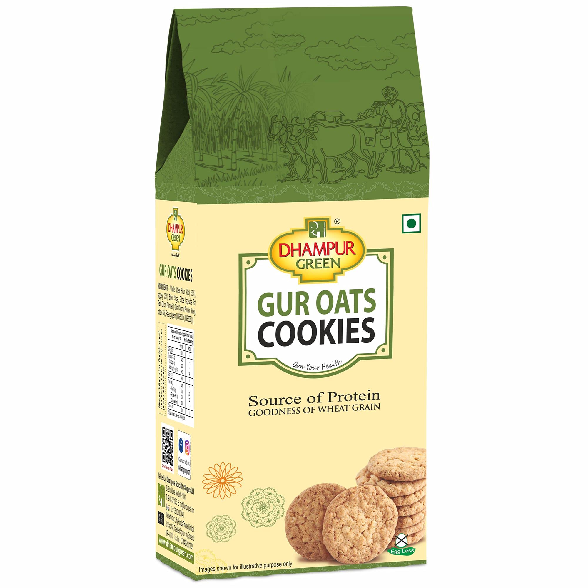 Wholesome and delicious Gur Atta Biscuits with the natural sweetness of organic jaggery. This junk-free snack is mindfully made to nourish you and your family so that you can enjoy it without feeling guilty. Made after a careful selection of ingredients we at Dhampur Green offer healthy snacks that digest slow avoiding any sudden spikes in blood sugar levels. Enjoy falling in love at the first bite! No Preservatives or Artificial Flavours.