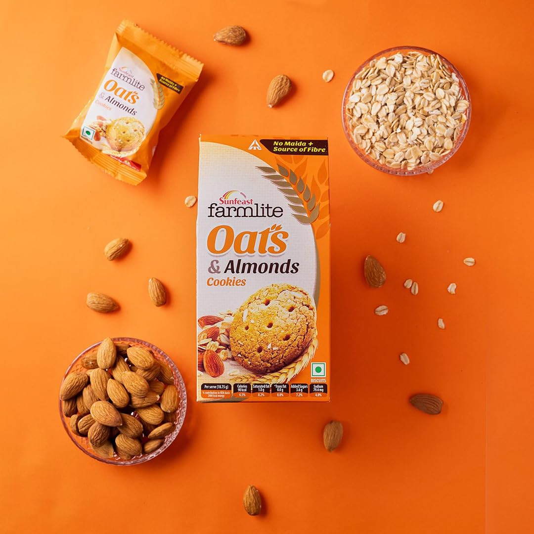 You can feel the dash of almond and crunchy oats in every bite of sunfeast farmlite biscuits. With it's healthy oat fibre it keeps you full all day..