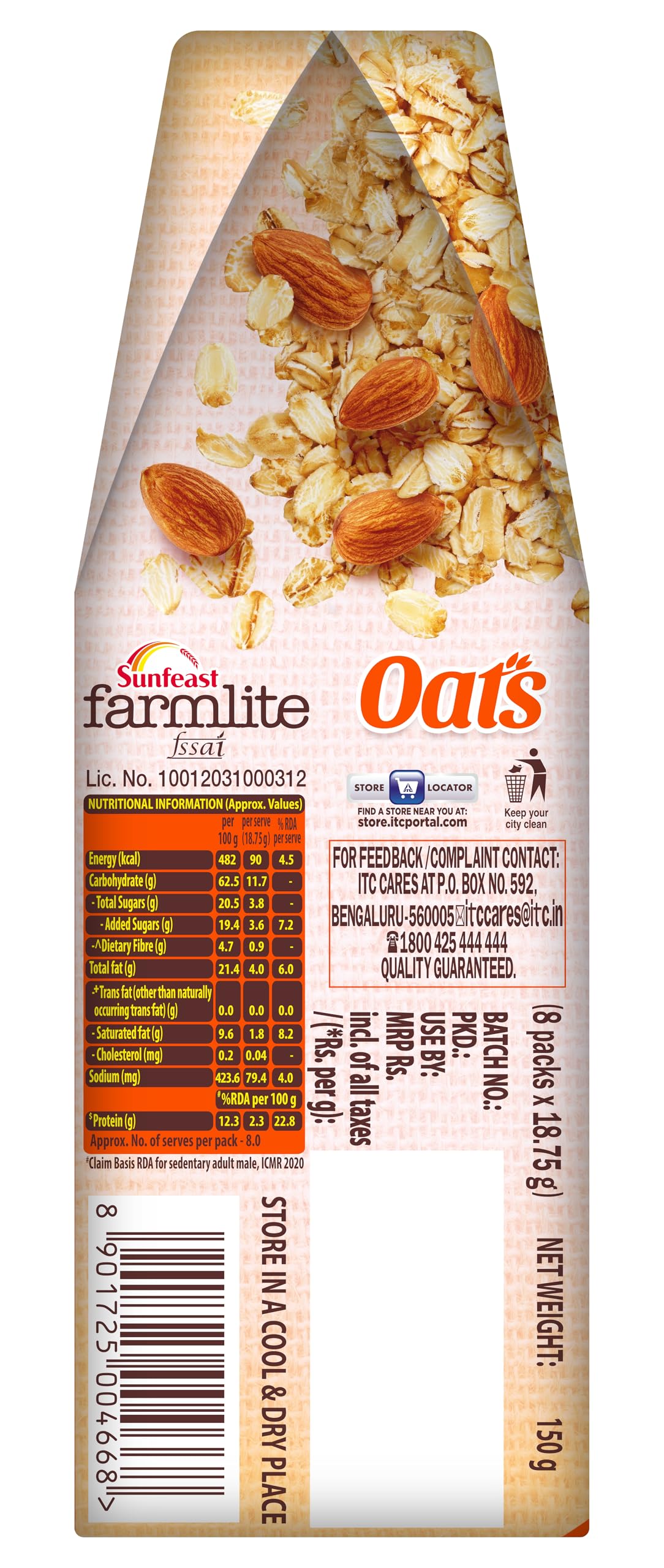 Sunfeast Farmlite Oats with Almonds cookies Biscuits 150g