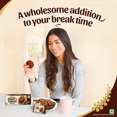 Savor the delicious combination of flavors and delightful crunch of the all-new Sunfeast Farmlite Super Millets Ragi and Jowar Chocochip Cookies. A crispy tasty snack-time treat that will delight your taste buds. Infused with the goodness of millets such as Ragi and Jowar these cookies are further elevated with the addition of delectable choco chip bits enhancing their flavor to perfection. They contain no maida and are instead packed with the nutritional benefits of millets including iron protein and fiber. Our Master Bakers have meticulously developed a recipe to ensure a pleasantly surprising taste without compromising on flavor. Make these millet biscuits your go-to snack to satisfy your mid-meal hunger pangs or when you need something to munch on with your cup of coffee. Each conveniently packaged pack contains 6 cookies ensuring you have plenty to enjoy.With 2023 being the 'International Year of Millets' ITC has embarked on its Mission Millets to celebrate these grains that are a part of India's rich culinary heritage. As a part of this mission ITC has launched Sunfeast Farmlite Super Millets Ragi and Jowar Cookies and Sunfeast Farmlite Super Millets Ragi and Jowar Chocochip Cookies.So get yourself a pack of Sunfeast Farmlite Super Millets Cookies and experience the perfect blend of taste and crunchiness that's sure to be loved by all.