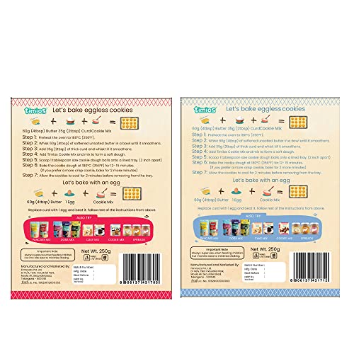 Timios instant cookie mix is perfect treat for both kids and adults! Indulge in the delightful goodness of freshly baked cookies without the hassle of starting from scratch. Packed with the goodness of whole wheat & jaggery it provides a tasty snack option that caters to both young and mature palates. Preparing timios eggless instant cookies is a breeze. Just follow the simple instructions on the packaging and within minutes you'll be greeted by the heavenly aroma of freshly baked cookies wafting through your kitchen. Share these delicious treats with your loved ones serve them at parties or keep them as a go-to snack for those moments when you need a little something special.