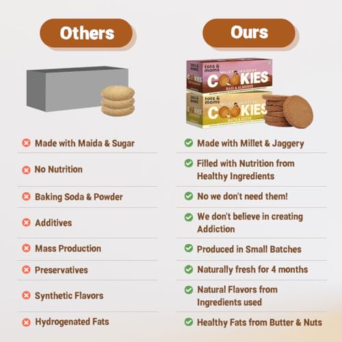 Embrace wholesome snacking with Ragi & Almond Millet & Jaggery Cookies! Ragi Nuts & Seeds goodness for growing bodies & happy families. These delicious bites are packed with nutrients and free of nasties making them a guilt-free treat for everyone in the family.