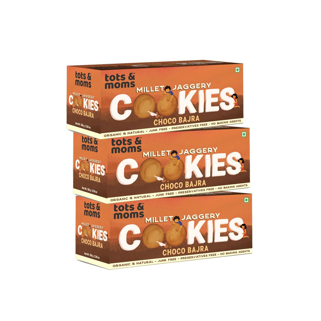 Tots & Moms NO Maida NO Sugar - Choco Bajra Cookies | Millet & Jaggery Biscuits | Pack of 3-150g Each