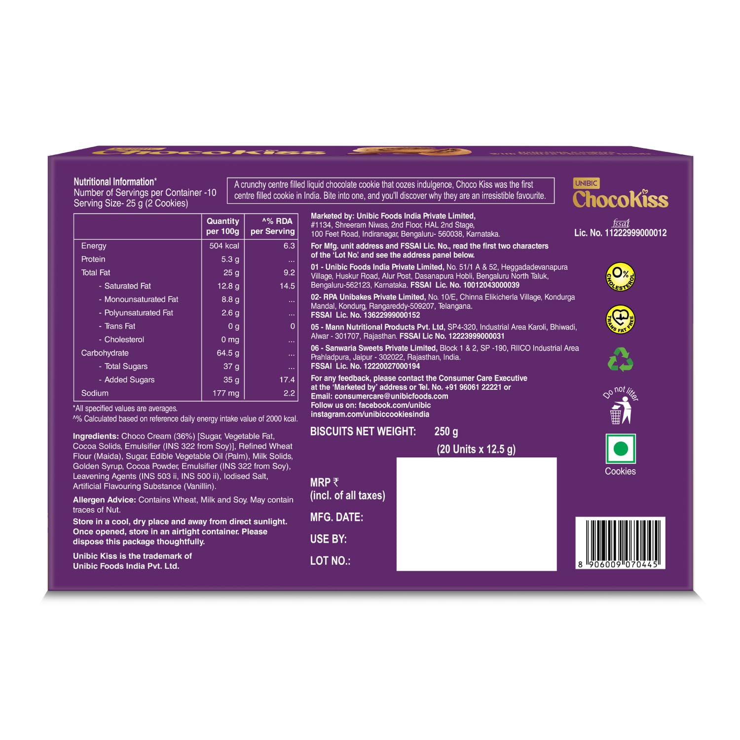 Unibic Foods India Pvt LTD Choco Kiss Cookies 250 Grams, Filled with Chocolate, Rich & Indulgent Snack Delicious Creamy Flavors, Crunchy and Choco Cream Centred Biscuits Made for Chocoholics