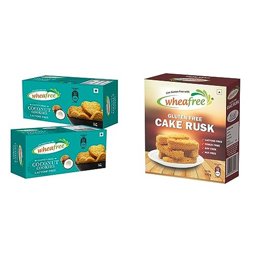 Wheafree Gluten Free Coconut Cookies - Pack of 2 (200g each) | Tasty & Crunchy | Coconut Flavoured Cookies | Best Tea Time Snacks | Egg Free | 100% VegetarianWheafree gluten-free Coconut Biscuits flavoured with a rich aroma and taste of coconut leaves behind a crunchy and crispy sensation after a few chews. These coconut biscuits have now become an ideal companion for tea time. It can be consumed as snacks with morning or evening Tea/Coffee or can be combined with other recipes. It is a very good option for Celiac Patients who can’t stop craving for tasty and healthy biscuits.Wheafree Gluten Free Cake Rusk (300 Grams) Non-Veg | Tasty Crunchy and Crispy | Best Tea Time Snacks | No Maida | 100% Wholesome IngredientsGluten Free Cake Rusk - 300gmOur Cake Rusk is crunchy and crispy. They are the perfect tea/coffee time snacks.