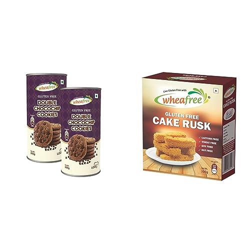 Wheafree Gluten Free Double Chocochip Cookies (Pack of 2 x 200g each) | Tasty Crunchy and Chocolate Flavoured Cookies with even more Chocochips | Best Teatime Snacks | Vegetarian | Handmade with LoveWheafree Double Chocochip Cookies are an indulgent treat for you to experience the rich taste of chocolate in every bite. Our Double Chocochip cookies get ready to take yourself on a delightful chocolicious journey. The Cookies are filled with chocolate chips that burst out of the surface. They are blended into the crunchy cookie in a such a way that every bite will be a mouthful of chocolate. Make the moments special and share the joy with our scrumptious pack of chocochip cookies and delight your loved ones with our irresistibly tempting cookies.Wheafree Gluten Free Cake Rusk (300 Grams) Non-Veg | Tasty Crunchy and Crispy | Best Tea Time Snacks | No Maida | 100% Wholesome IngredientsGluten Free Cake Rusk - 300gmOur Cake Rusk is crunchy and crispy. They are the perfect tea/coffee time snacks.