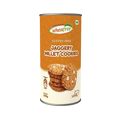Jaggery Millet Cookies - Healthful Delights! Experience the perfect harmony of health and flavour with our thoughtfully crafted cookies. We have carefully blended a combination of Sorghum (Jowar) Amaranth Pearl Millets (Bajra) Bengal Split Gram Jaggery and Desi Ghee to create a truly nourishing treat. These cookies are a guilt-free snacking option as they are naturally sweetened with Jaggery instead of refined sugar. Packed with the goodness of Millets and the added benefits of Bengal Split Gram our cookies provide a good source of fiber vitamins and minerals. Perfect for gluten-free and vegetarian diets our Millet Jaggery Cookies are a delightful way to honour tradition while promoting overall well-being. Treat yourself to these healthful delights and savour each bite with the goodness of Millets Jaggery and Desi Ghee! Enjoy Jaggery Millet Cookies with your family.Wheafree Tutti Frutti Cookies are an indulgent treat for you to experience the rich fruity taste in every bite. The Cookies are filled with tutti frutti cherries and cashews that burst out of the surface. Make the moments special and share the joy with our scrumptious pack of Wheafree Tutti Frutti cookies and delight your loved ones with our irresistibly tempting cookies. Enjoy them whenever you feel like and fix your mood instantly. They go very well with tea and coffee so now you have an everyday snack that you can relish. Wheafree Double Chocochip Cookies are an indulgent treat for you to experience the rich taste of chocolate in every bite. Our Double Chocochip cookies get ready to take yourself on a delightful chocolicious journey. The Cookies are filled with chocolate chips that burst out of the surface. They are blended into the crunchy cookie in a such a way that every bite will be a mouthful of chocolate.