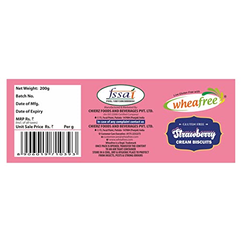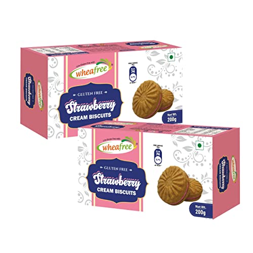Wheafree Gluten Free Strawberry Cream Biscuits (Pack of 2 - 200g each )These cookies have now become an ideal companion for tea time. It can be consumed as snacks with morning or evening Tea/Coffee or can be combined with other recipes. We cater to a wide range of gluten-free products made in a contamination-free environment. Wheafree cookies and biscuits are manufactured to provide safe and healthy food options to people suffering from intolerance towards Gluten. Wheafree cookies and biscuits are free from grains like Wheat Barley Oats Rye and are made in 100% Gluten-free environment. We have made these multi-seed cookies and biscuits not only to take care of your nutritional needs but also to satisfy your craving for tasty and delicious snacks requirement.