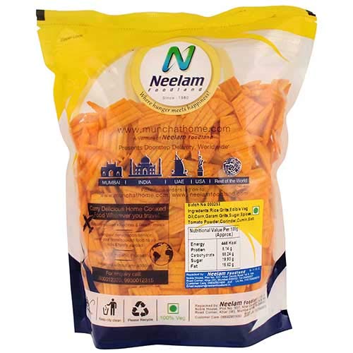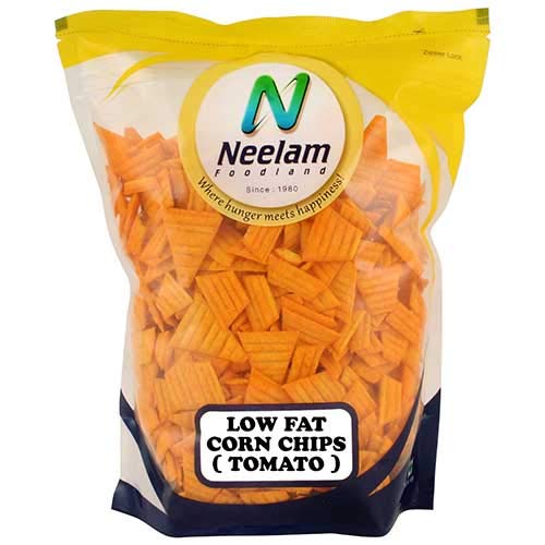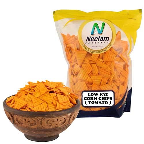 Neelam Foodland LOW FAT Tomato Corn Chips: Crisp & Delicious Tomato Flavoured low-fat snack for any time munching. A healthier and calorie-conscious alternative to deep-fried snacks like chips crisps etc. While it is perfect to have on a cold rainy day with a cup of chai this versatile snack is also light enough to enjoy on a hot summers day with a glass of juice or to take along to school or office in a snack box! Tea-time is never complete without dry snacks. Enjoy a variety of snack from Neelam Foodland at your next party