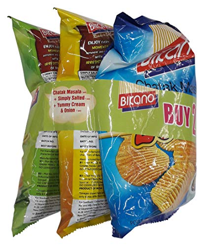Bikano potato chips are crispy tangy and spicy Chips along with tea coffee or any other beverages in the evening. Made of the combination of Potato and flavoured with spices Salted and Cream. This snack is very popular among kids as well as adults.