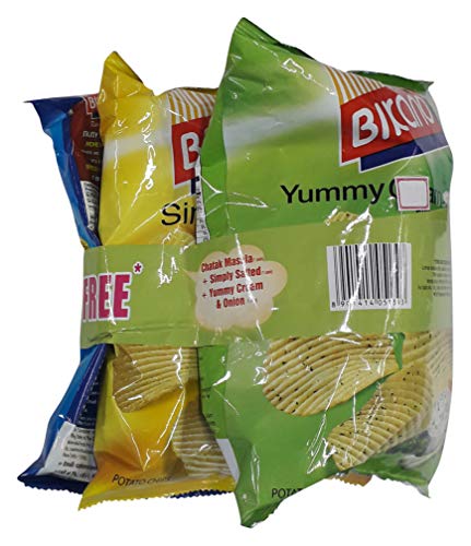 This pack contains chatak masala simply salted and yummy cream potato chips
