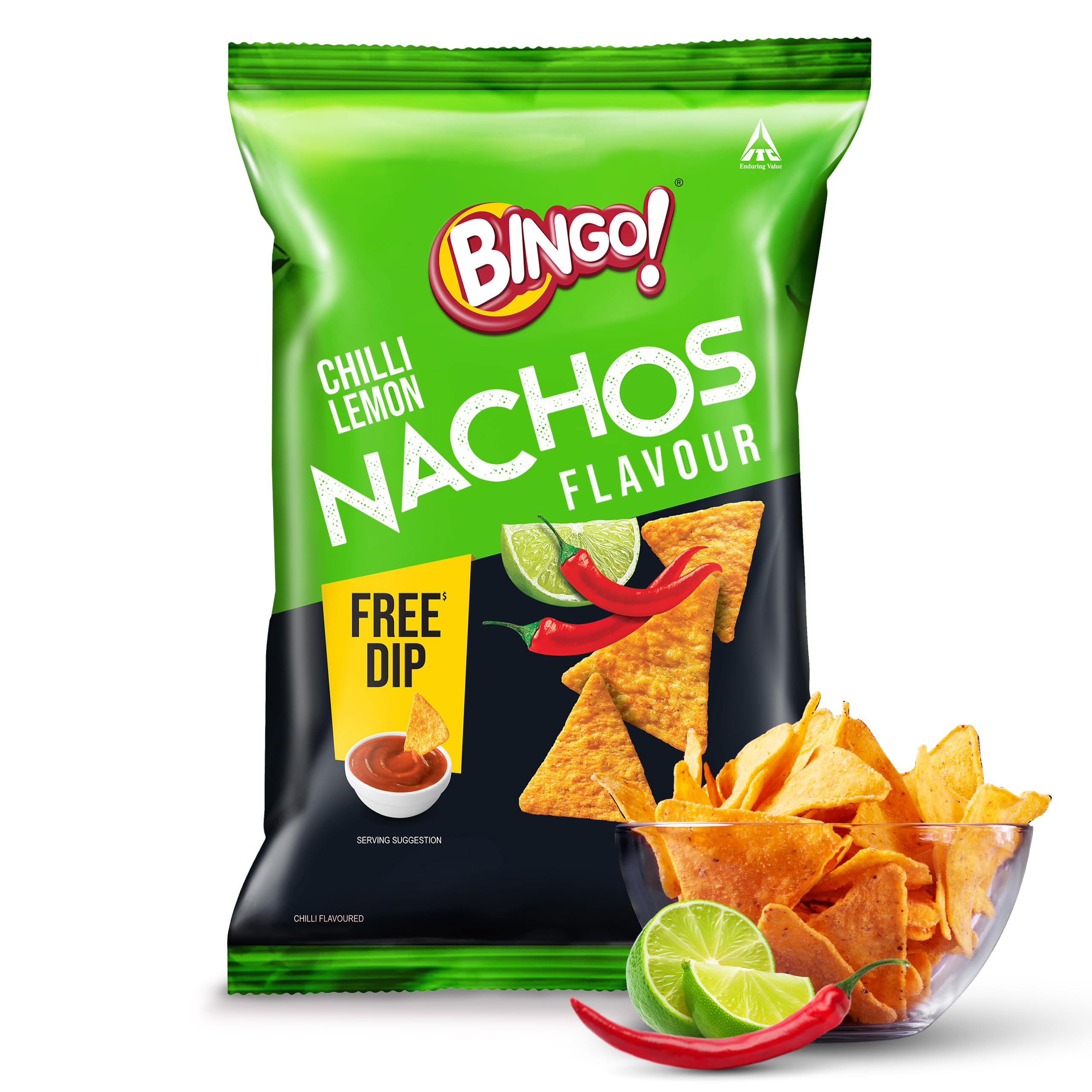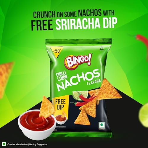 Ready to elevate your snacking game? Introducing the all-new Bingo! Nachos Chilli Limon Flavour. Experience the fusion of spicy chillies and tangy lemon that create an irresistible crunchy nachos snack. Made from corn these nacho chips offer a unique texture and crunch along with this unique seasoning will keep you hooked. Relish the perfect balance of heat and tang with every mouth-watering bite. Whether it's a party or movie night Bingo! Nachos Chilli Limon Flavour is your go-to companion. Pair them with a cheesy dip for creamy goodness or spice things up with a zesty salsa dip. Feeling adventurous? Try them with our free Sriracha dip or create your own combo. Indulge in the irresistible crunch and tantalising flavours of Bingo! Nachos Chilli Limon. It's a must-have snack for nacho lovers craving that spicy and tangy twist. Grab a pack dip it crunch it and embark on a flavour-filled snacking adventure. Get your taste buds dancing with Bingo! Nachos Chilli Limon Flavour.