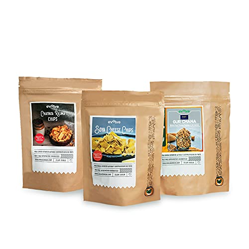 Enjoy a healthy collection of delicious Indian snacks like Chatpata Rajma Gur Chana and Soya Corn hips. Satiate your hunger packs with the nutritious goodness of all natural beans that help build immunity and are good for your heart. The snacks are vacuum cooked and gluten free so you can munch on guilt free. These protein-rich snacks boost your energy & help in your digestive process as well. Say hello to a happier and healthier you with Evolve Healthy Snacks.